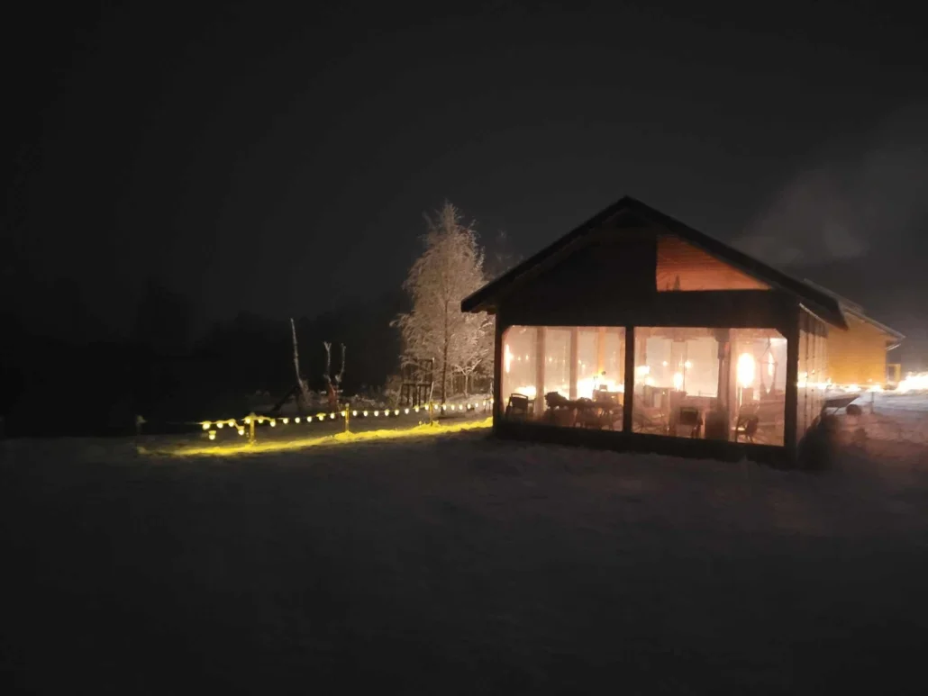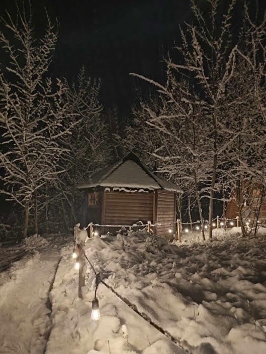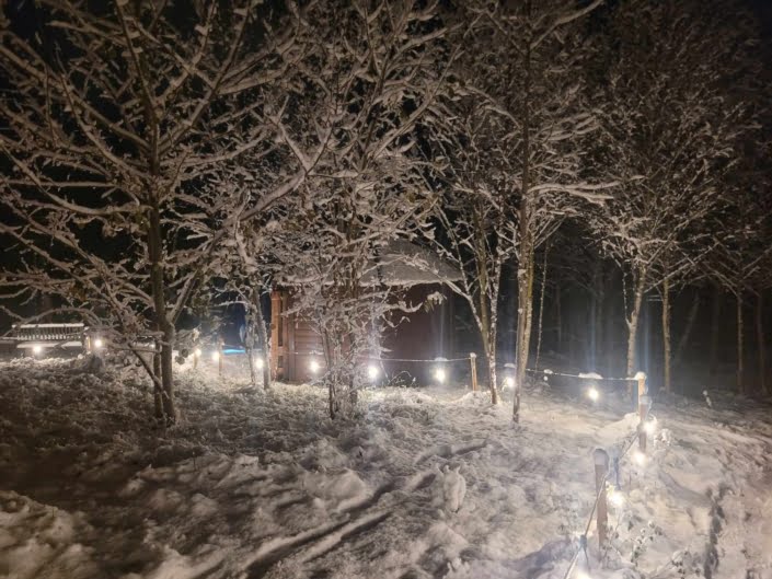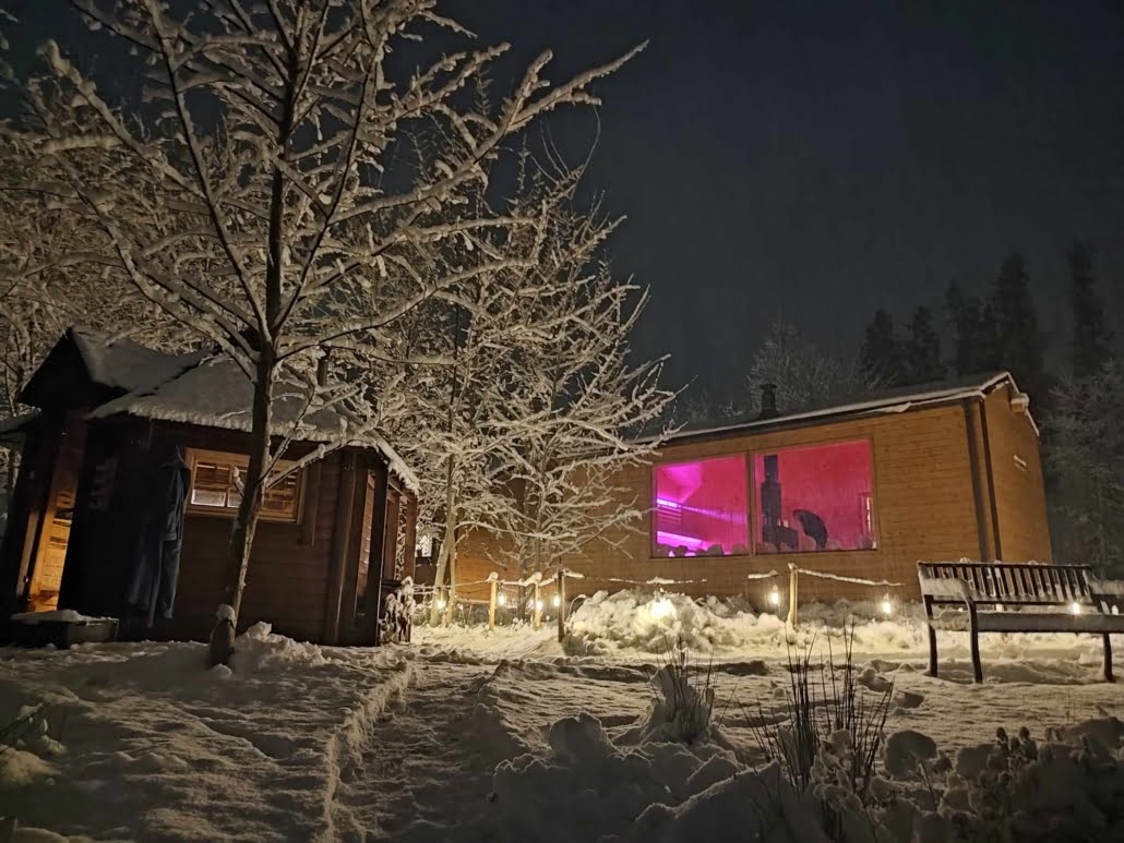 Wraz z białym puchem, który spadł z nieba, nasz saunowy ośrodek nabiera wyjątkowego uroku, przenosząc nas prosto do bajkowej krainy. Zimowa sceneria Saunowego Stawu zachwyca swoim malowniczym pięknem, gdzie delikatne płatki śniegu podkreślają niepowtarzalny urok tego miejsca. Ciepłe sauny i gorąca balia stają się jeszcze bardziej relaksujące, a światełka migoczące na tle białego puchu tworzą niezwykle przyjemną atmosferę, która zachęca do oderwania się od codziennego zgiełku i zanurzenia w magii zimowego krajobrazu.