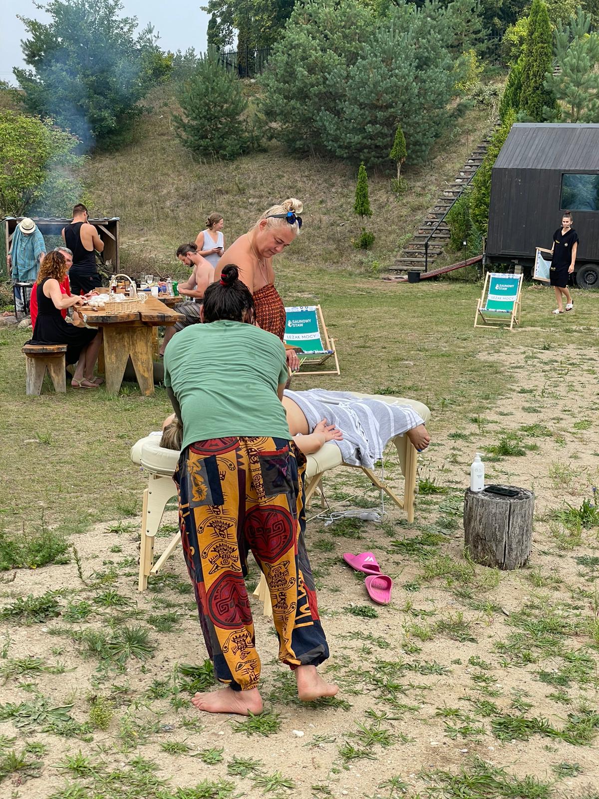 Do tego wspólne gotowanie, masaże, ruska bania, gorąca balia, kąpiele w stawie, ognisko, muzyka… pięknie spędzony czas w gronie ludzi myślących bardzo podobnie, kochających ten sam świat.
