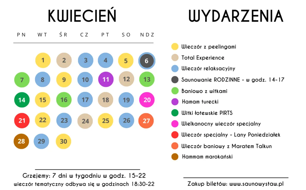 Kalendarz kwietniowych grzań w Saunowym Stawie