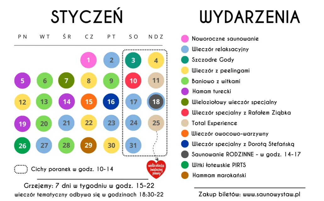 Kalendarz styczniowych grzań w Saunowym Stawie