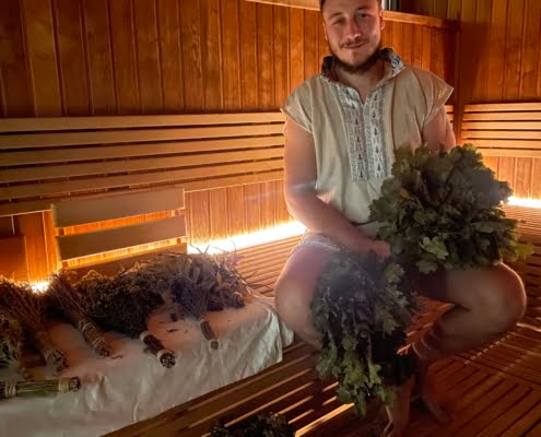 Dominik Zitny wraz z dwoma innymi kolegami są pionierami procedur i ceremonii baniowych w Czechach. Ta metoda saunowania jest całkowicie oparta na naturze i jej obecności w saunie. Dominik naucz tego stylu nie tylko w Czechach, ale także w całej Europie, wyłącznie w ośrodkach wellness i saunach.