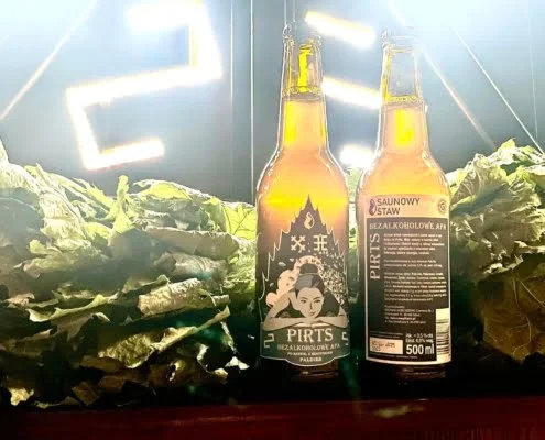 Dlatego właśnie razem z Browarem Gościszewo, przygotowaliśmy dla Was aż trzy wyjątkowe piwa. Lekką APA o nazwie Saunamistrzyni, tropikalnego Letnika 0% i jasnego, pełnego Saunamistrza. Jednak tu i teraz przedstawiamy Wam wyjątkowe piwo bezalkoholowe o nazwie Pirts. Pirts to witki łotewskie, to sauna w tym kraju, to również piękny rytuał witkowy, o którym więcej możesz dowiedzieć się oglądając ten krótki (5 min) film lub czytając o naszej ceremonii witek łotewskich, których można doświadczyć w naszej saunie Pirts.